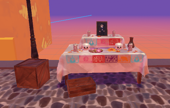 One of the most significant assets worked on was the ofrenda. Not only was this a hero prop (an object the player interacts with frequently) but it also carried strong cultural significance. A considerable amount of research went into designing it in a way that was respectful and culturally appropriate. More attention to detail was required during its creation so that it would never feel out of place within the world. This asset required a much more thoughtful and intentional approach than many of the others.